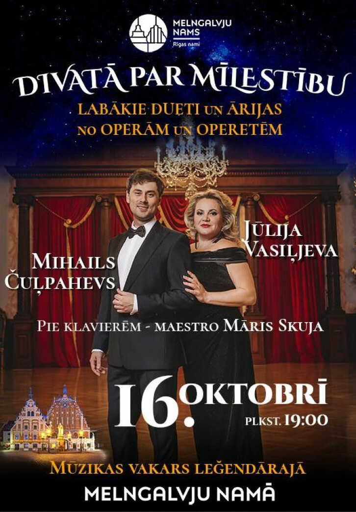 Latvijas operas zvaigznes uzstāsies ar kopīgu duetu liriskajā programmā "Divatā par mīlestību", kas klausītājus uz Melngalvju namu aicina 2020. gada 16. oktobrī. Izskanēs labākie dueti un ārijas no operām un operetēm.