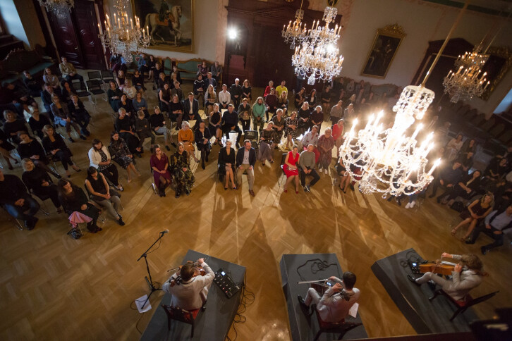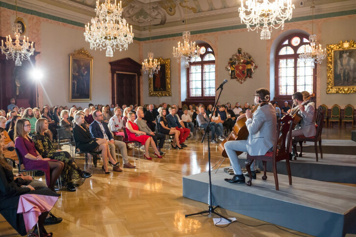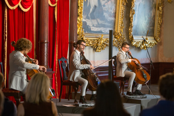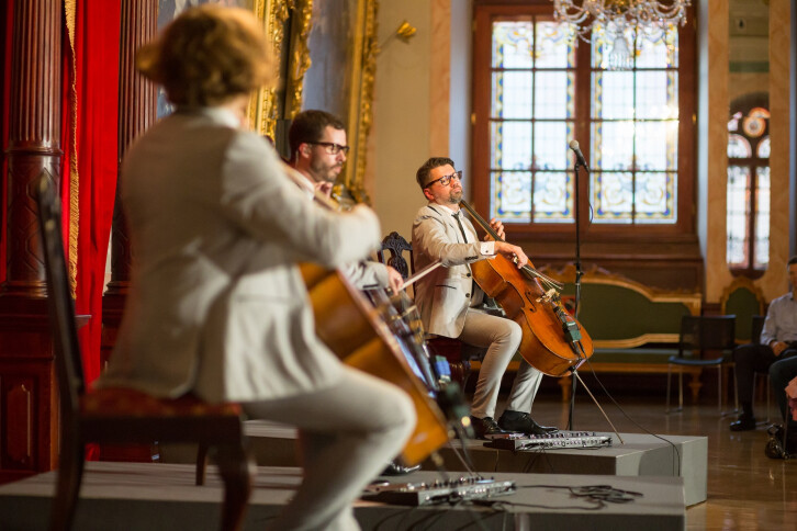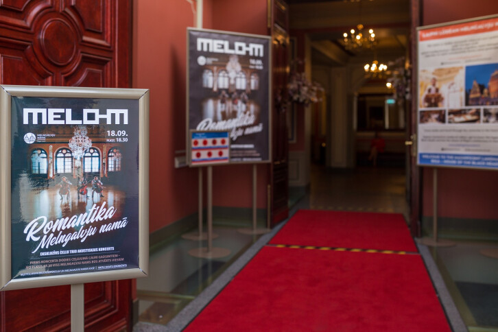 Melngalvju nama greznajā Svētku zālē mūzikas mīļotāji pulcējās divos čellu trio akustiskajos koncertos “Melo-M romantika Melngalvju namā”. Koncerti notika 2020. gada 18. septembrī.