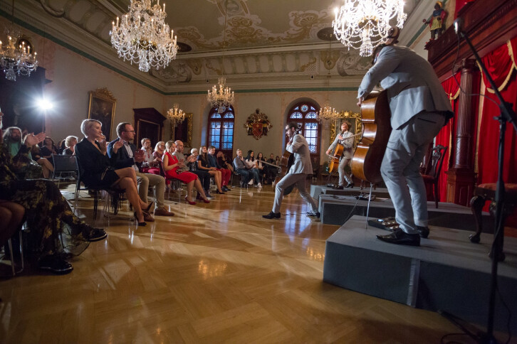 Šauram koncertu apmeklētāju lokam intīmā atmosfērā čellu trio “Melo-M” atskaņoja orģinālmūziku par meža, ūdens un kosmosa tēmām, kā arī pasaules populārās un rokmūzikas hitus.